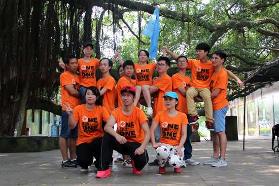稍事休息后,拓展項(xiàng)目就算開(kāi)始啦!由于訊網(wǎng)科技的四個(gè)成員團(tuán)隊(duì)彼此之間較少接觸,所以第一個(gè)環(huán)節(jié)就是團(tuán)隊(duì)建設(shè)。小隊(duì)之間的成員自我介紹,并推選出隊(duì)長(zhǎng)和隊(duì)花,隊(duì)長(zhǎng)是血?dú)夥絼偟拇罄蠣攤儯?duì)花就是我們貌美如花的女副隊(duì)長(zhǎng)們!而教官召集了8個(gè)隊(duì)長(zhǎng)和隊(duì)花,分配了第一個(gè)項(xiàng)目——團(tuán)隊(duì)展示:用8分鐘的時(shí)間想出隊(duì)名、口號(hào)、隊(duì)歌、LOGO,而且要進(jìn)行至少有三人處于浮空狀態(tài)的展示亮相!這讓每個(gè)小隊(duì)都忙開(kāi)了花,但訊網(wǎng)科技的小伙伴們都有很有才,沒(méi)一會(huì)兒,大家就想好了一切。于是,8個(gè)小隊(duì):狼牙隊(duì)、猛龍隊(duì)、小蘋(píng)果隊(duì)、蘋(píng)果隊(duì)、狂風(fēng)隊(duì)、齊心隊(duì)、戰(zhàn)神隊(duì)、八路隊(duì)一一亮相!