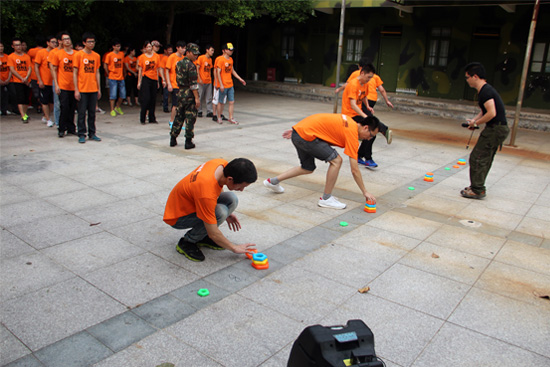 而“愚公移山”則是一個(gè)考驗(yàn)抓取核心問(wèn)題,并分解安排個(gè)人定位的項(xiàng)目。項(xiàng)目規(guī)則看似簡(jiǎn)單,只要遵守規(guī)則,把五塊由小到大的道具從一個(gè)地方移到另一個(gè)地方。但在短時(shí)間內(nèi)分配到每個(gè)人并依照規(guī)則進(jìn)行轉(zhuǎn)移,卻難住了不少隊(duì)伍。遺憾的是,八個(gè)小隊(duì)最終只有三個(gè)小隊(duì)完成了項(xiàng)目。當(dāng)然,沒(méi)完成項(xiàng)目的隊(duì)伍,隊(duì)長(zhǎng)可就辛苦啦,做了好幾十個(gè)俯臥撐……