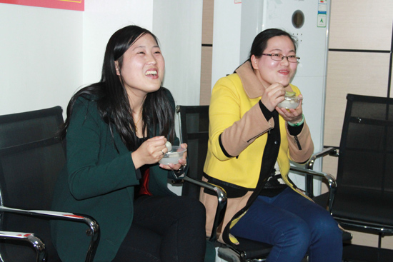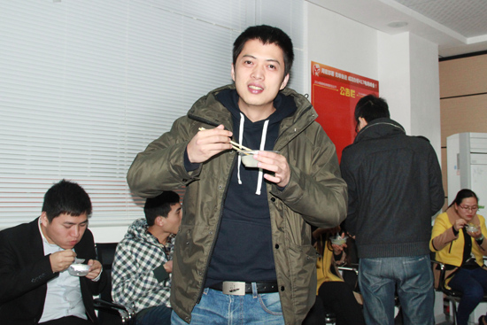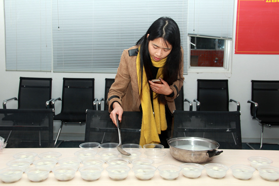 看,我們親愛的美玲姐姐早早就準(zhǔn)備好了元宵,公司外面下著蒙蒙春雨,公司里卻傳來陣陣飄香。